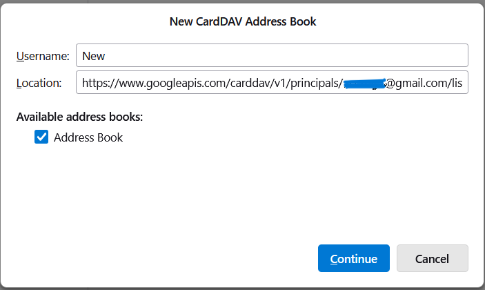 CardDAV server address: https://www.googleapis.com/.well-known/carddav